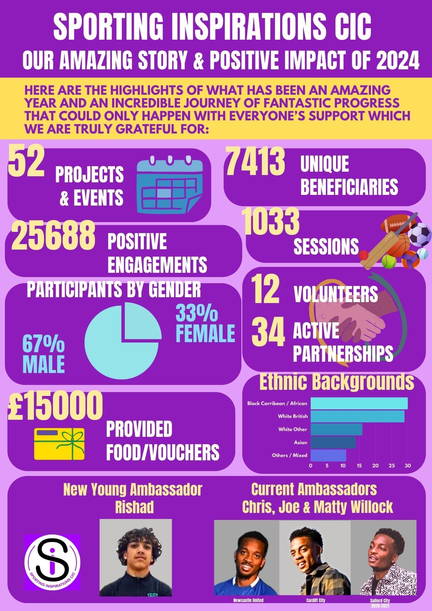 'You and your team continue to go above and beyond the communities you are now an integral part of. I wish you all the best for 2025 and look forward to more exciting work with Sporting Inspirations CIC and watching you grow as a fantastic organisation.'