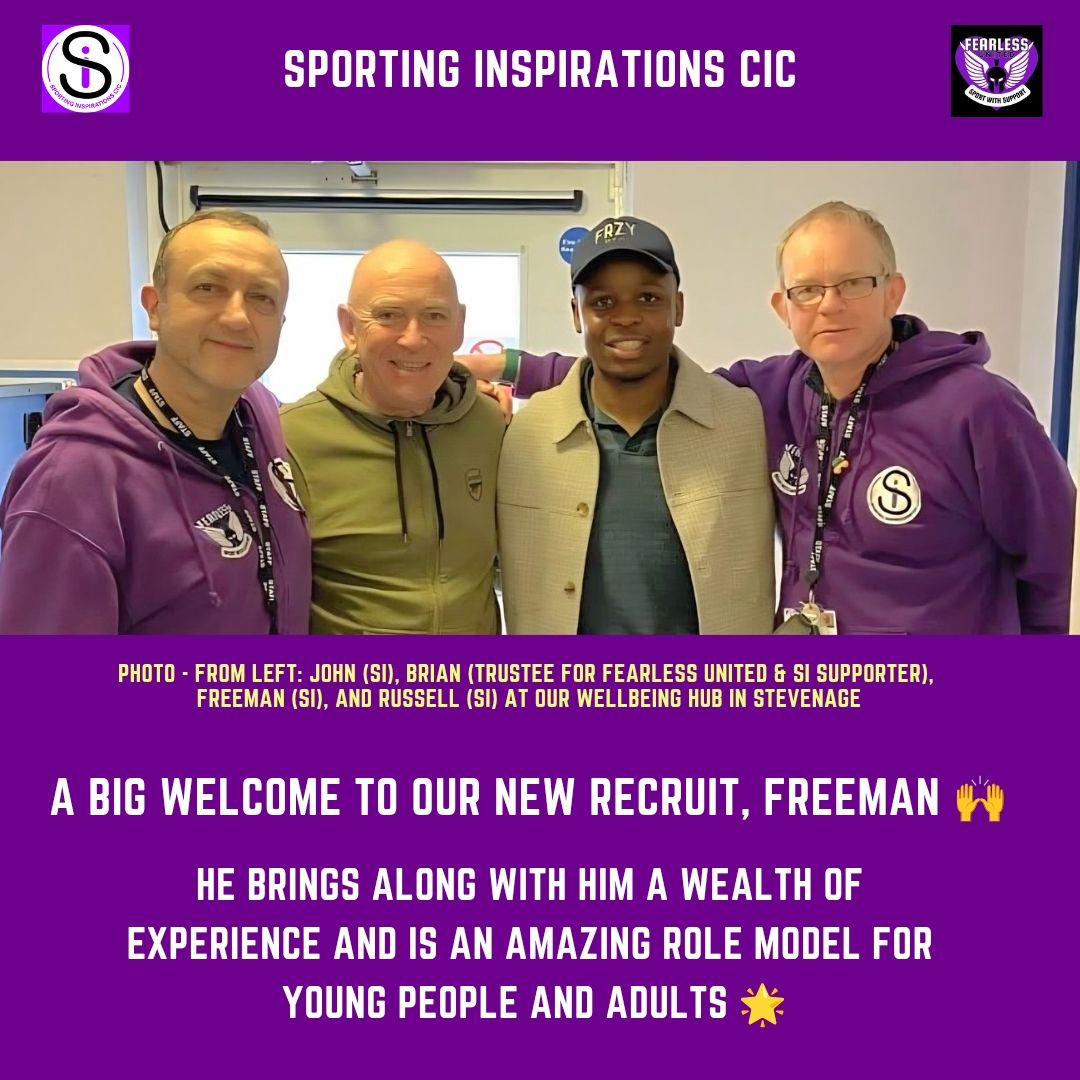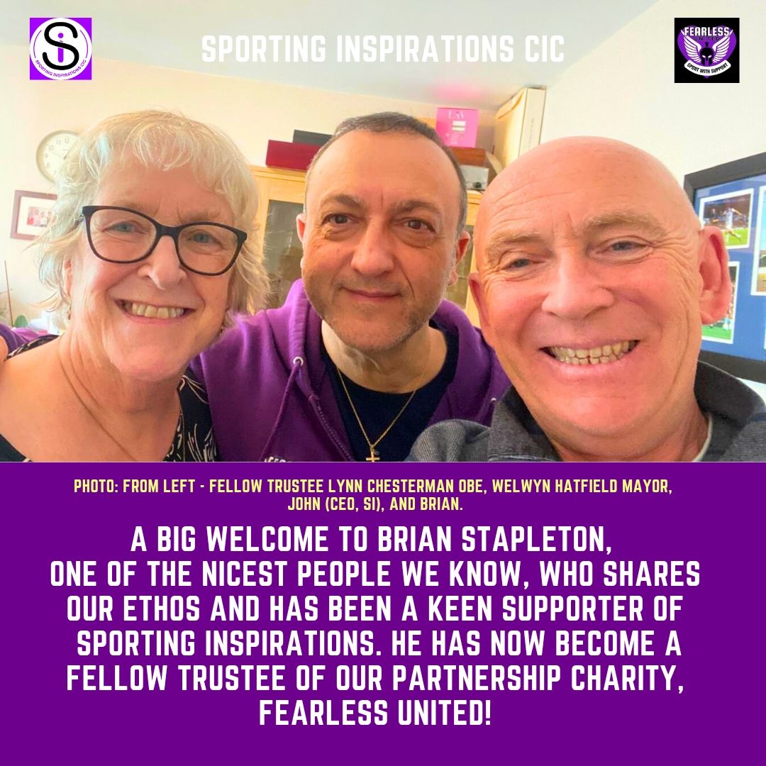 We’re delighted to welcome Brian as a new Trustee of Fearless United and valued supporter of Sporting Inspirations. We also warmly welcome Freeman, our newest team member, who brings a wealth of experience and is an inspiring role model for all.